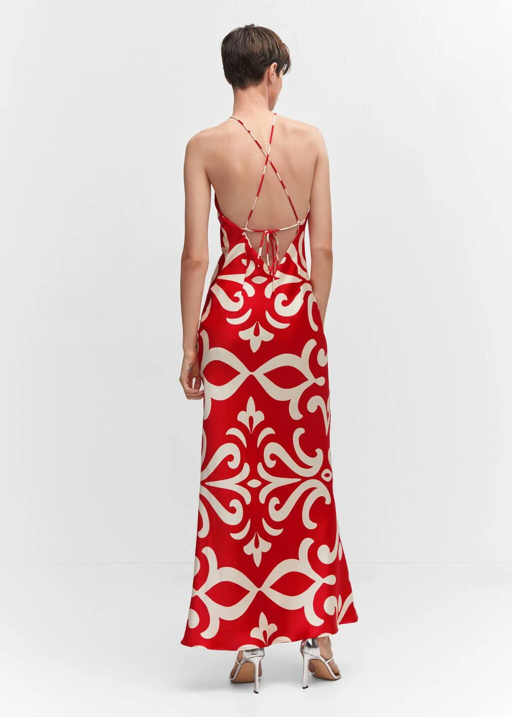 tissu satine, coupe cintree, imprime, coupe longue, emmanchures americaines, detail de maxifleur sur le col, bretelles fines, dos nu, doublureComposition: 71% polyester,29% elastomultiester. Doublure: 100% polyester