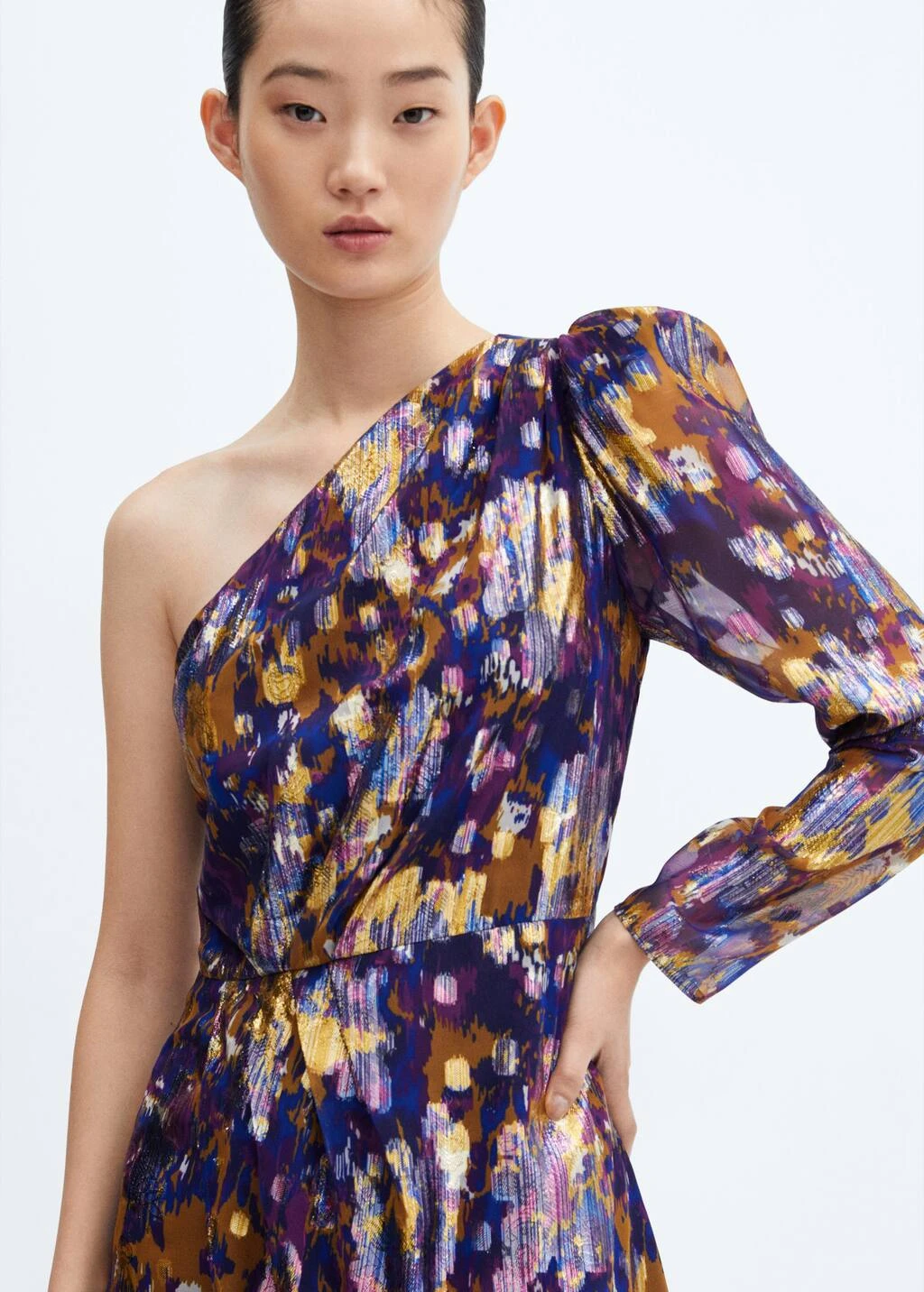 design epaules denudees, coupe courte, imprime, col echancre, manches longues, fermeture laterale, details en lurex, epaulettes, doublureComposition: 87% polyester,13% polyester avec revêtement de cuivre. Doublure: 100% polyester