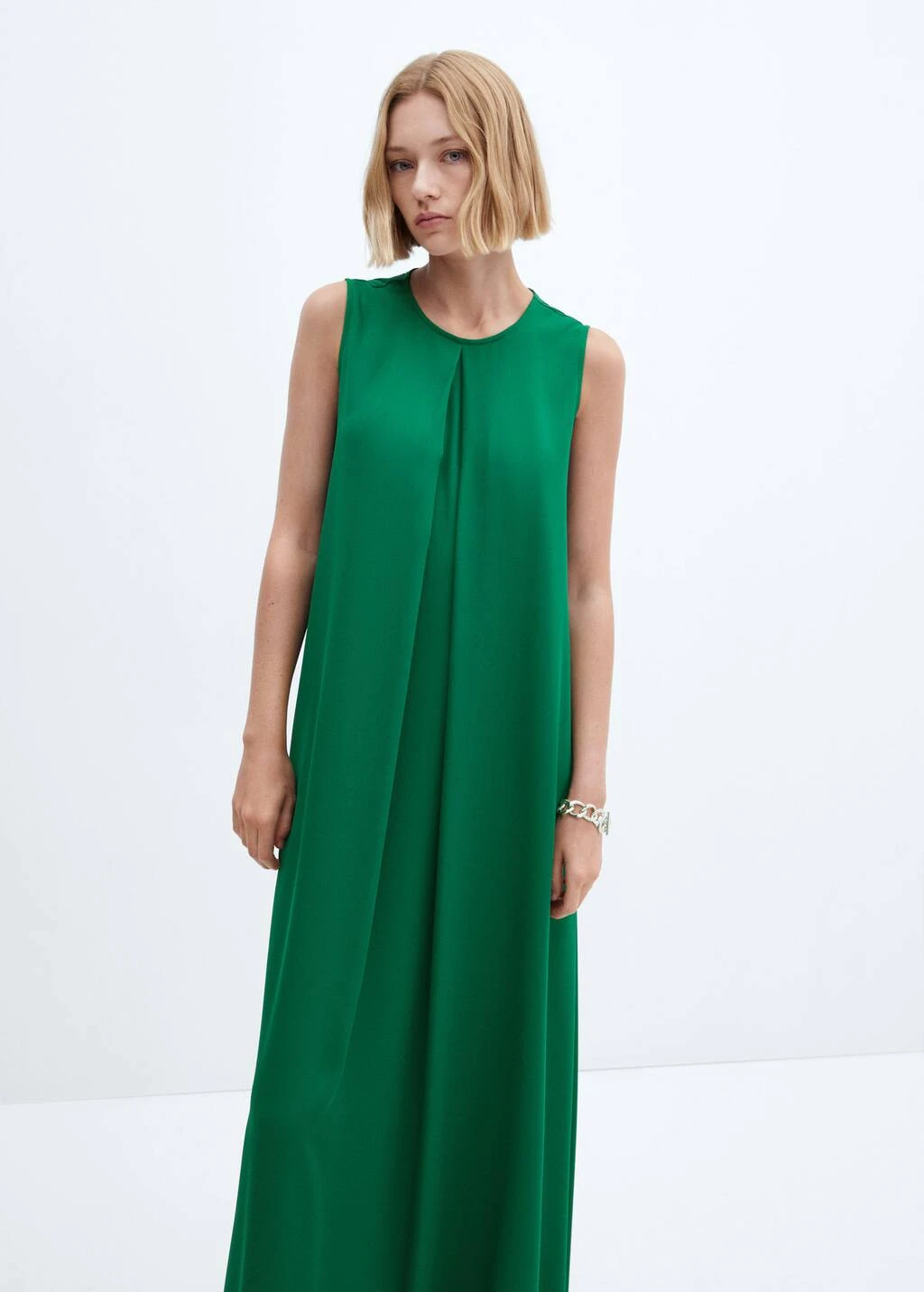 tissu fluide, evase, coupe longue, col rond, sans manches, ouverture dans le dos avec bouton, pinces sur le devantComposition: 62% polyester recyclé,38% polyester