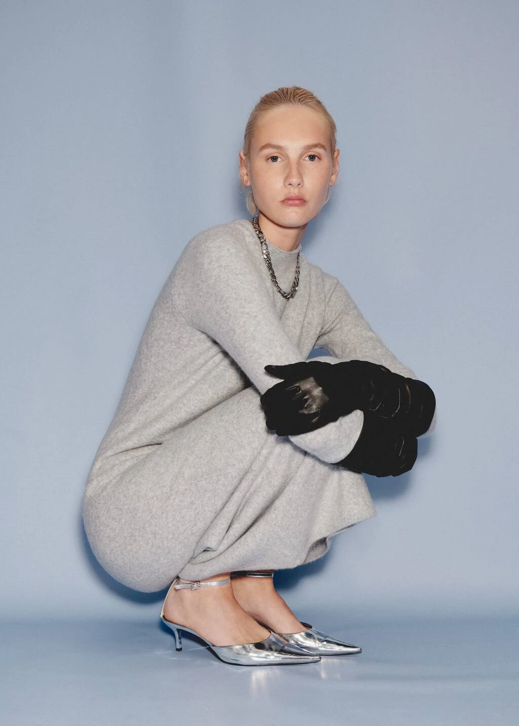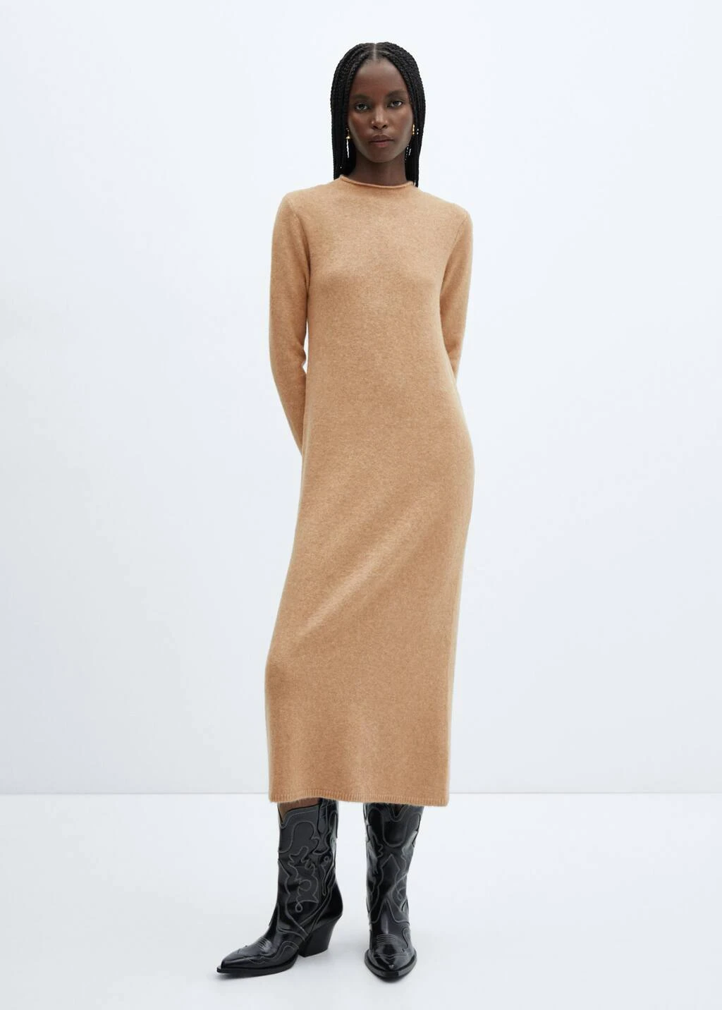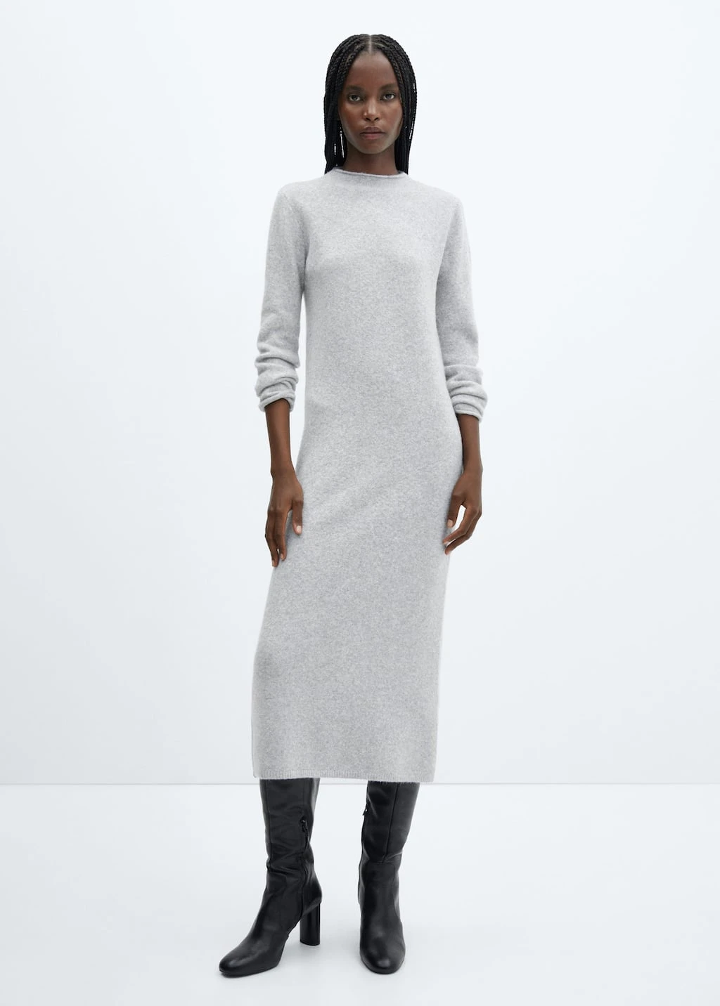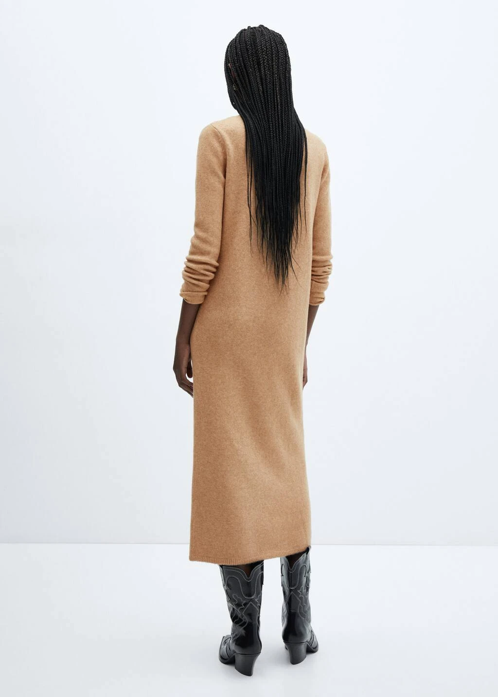 tissu de laine melange, tissu en maille, coupe droite, coupe midi, col montant, manches longuesComposition: 50% acrylique,40% polyester,6% elasthanne,4% laine