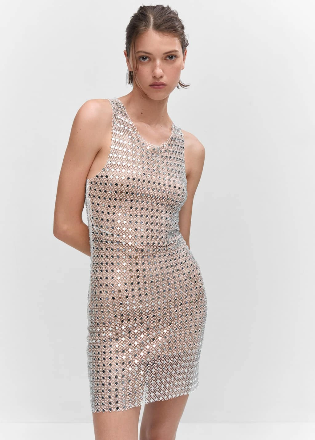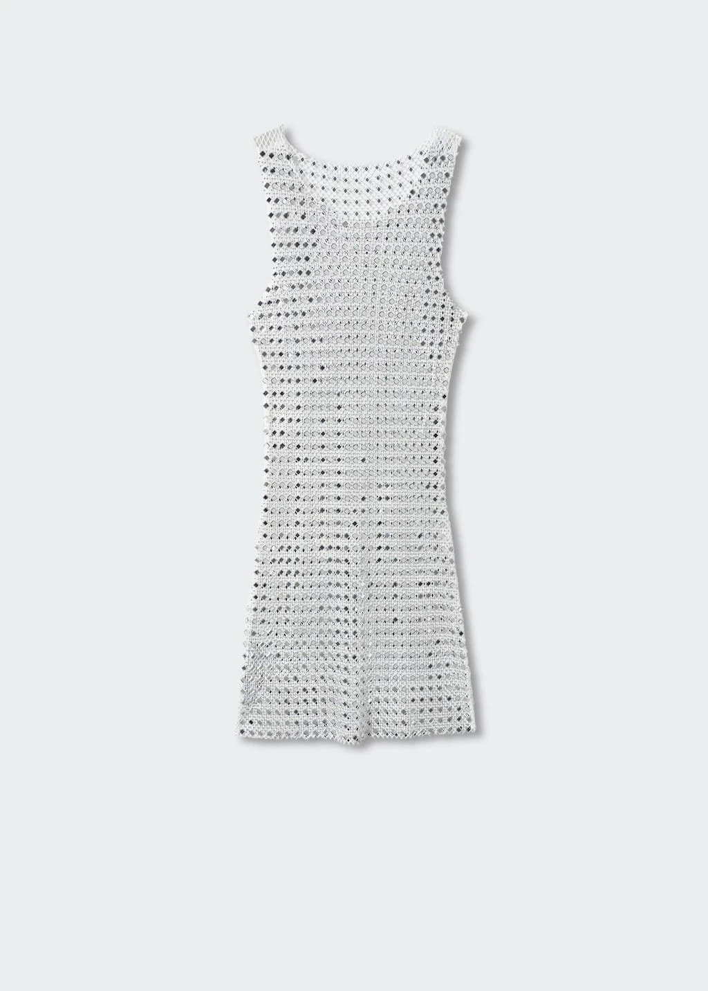 tissu en maille filet, ornement de cristaux, coupe droite, coupe courte, col rond, sans manches, sans fermeture, saison des festivals, collection fetes et ceremoniesComposition: 97% polyester,3% elasthanne. Applique: 100% verre