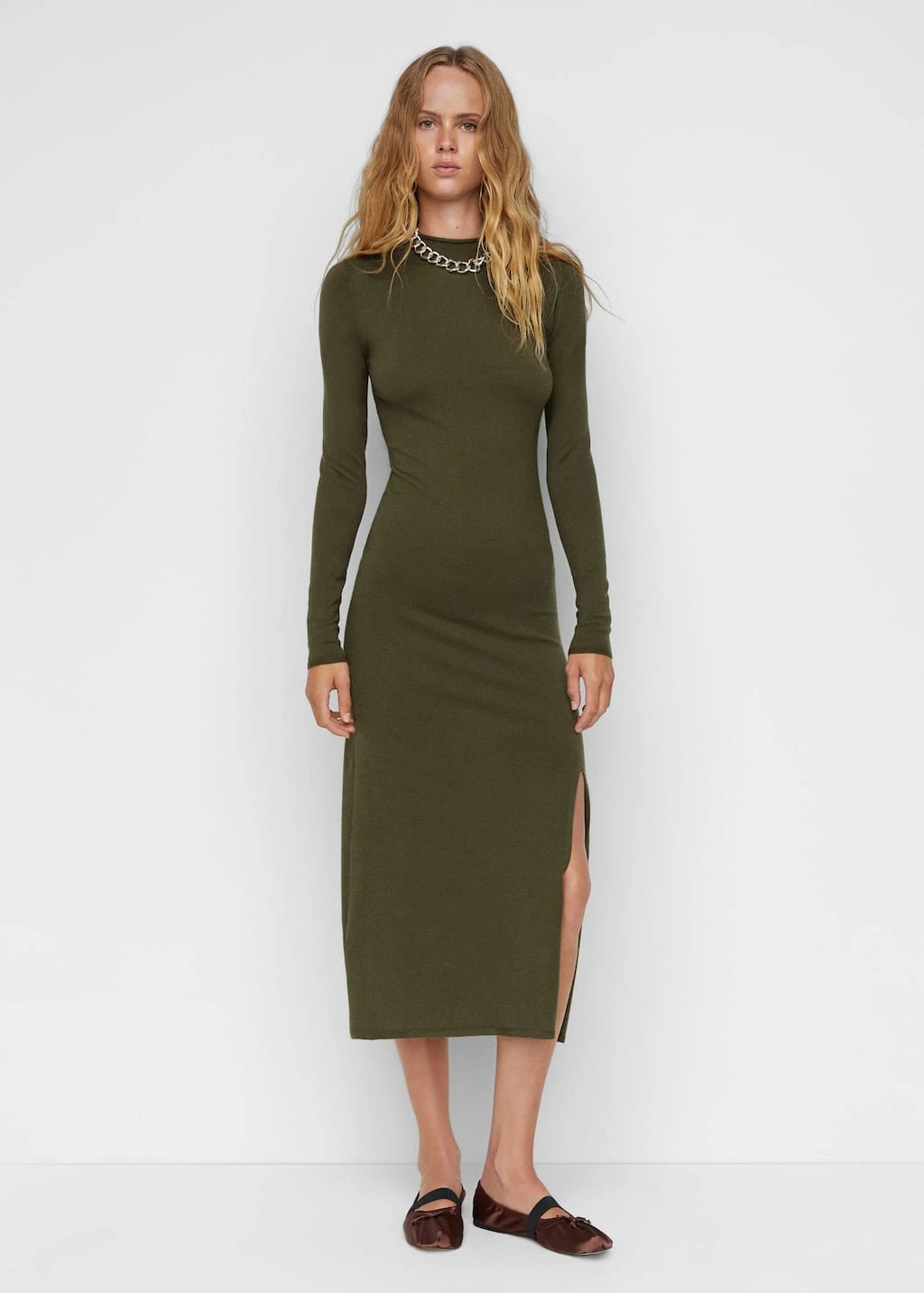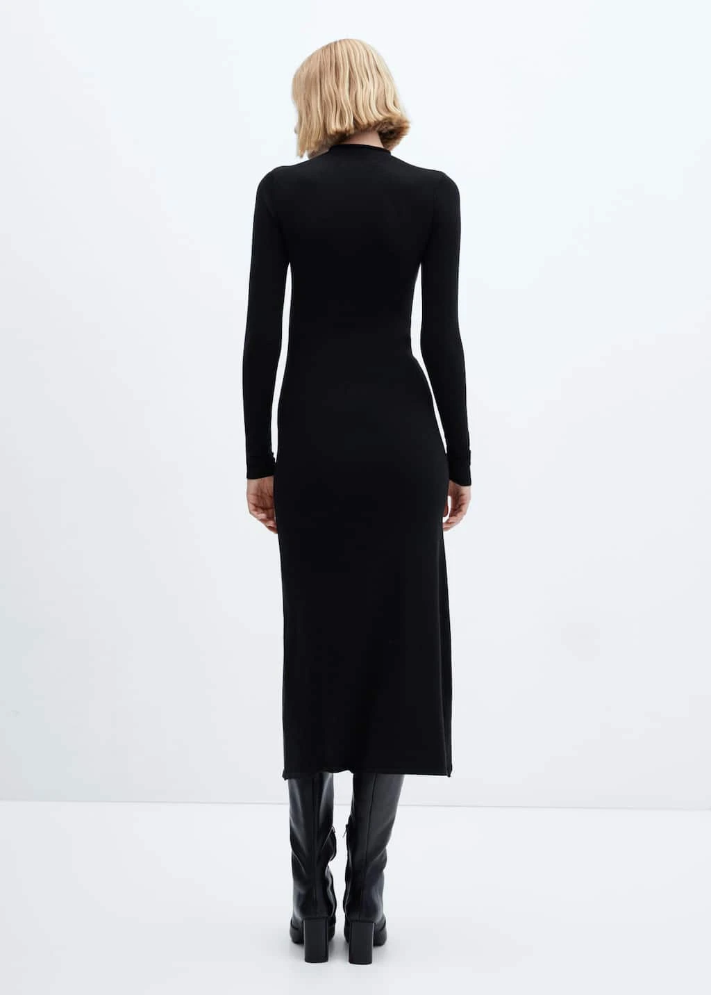 tissu en maille fine, coupe midi, ajuste, evase, col montant, manches longues, sans fermeture, sans doublure interieureComposition: 49% viscose,29% polyester,22% polyamide