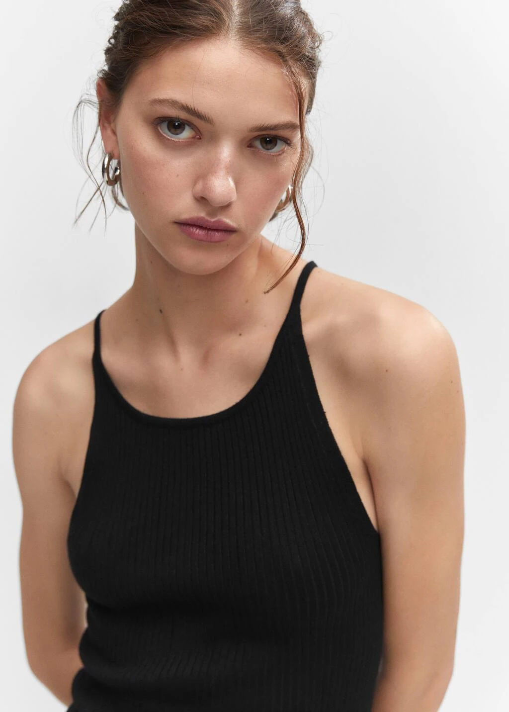 tissu en maille fine, bretelles fines, coupe droite, coupe midi, sans doublure interieure, sans fermeture, col echancreComposition: 70% viscose,30% polyamide