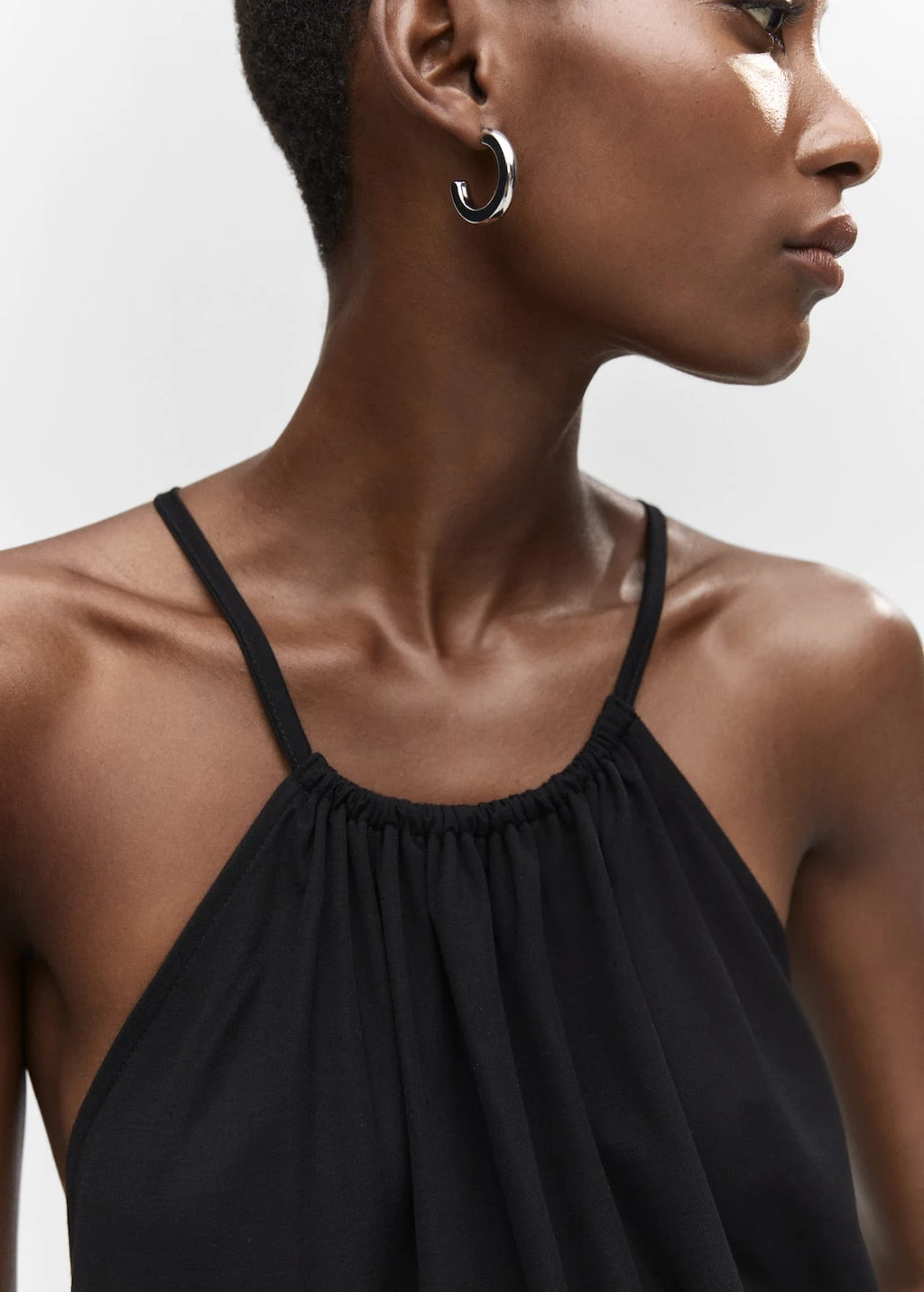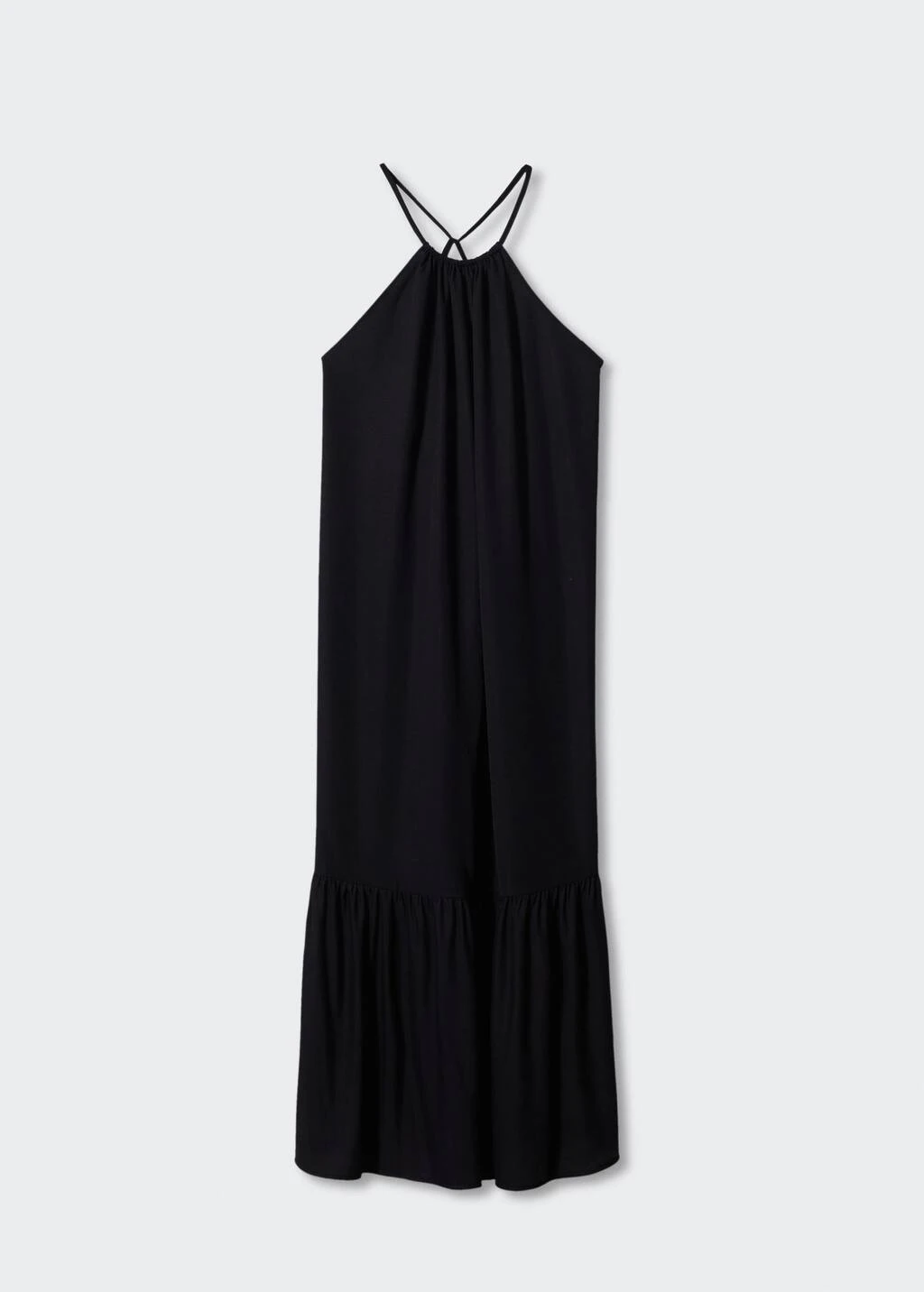 tissu fluide, evase, coupe maxi, coupe longue, emmanchures americaines, bretelles fines, bretelles croisees dans le dos, sans manches, dos nu, bas evase, collection fetes et ceremoniesComposition: 65% viscose,35% polyamide