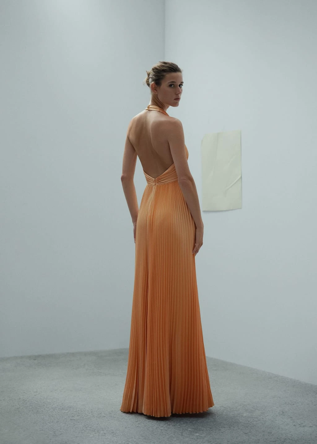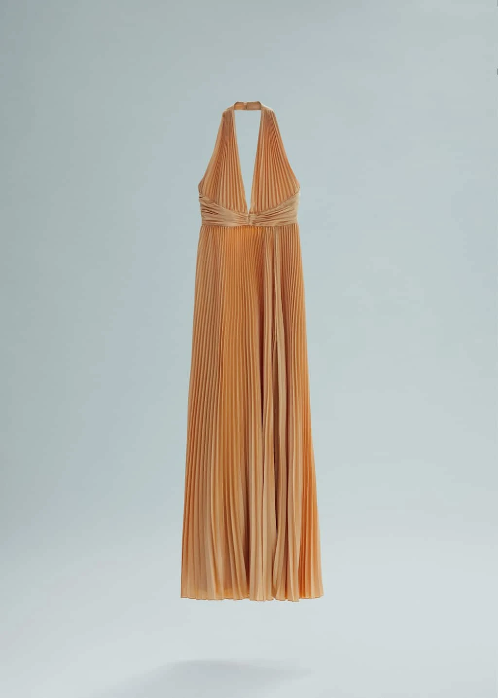 tissu satine, design plisse, evase, coupe longue, col en v, bretelles larges, bouton de fermeture a l’arriere, fermeture eclair a l’arriere, doublure, collection fetes et ceremonies, capsule : une collection de vetements en edition limitee, fabriques avec les meilleurs tissus et le plus grand soin en matiere de patrons, afin d’obtenir les meilleures finitions. cette collection exclusive est concue pour les evenements et les occasions les plus chics.Composition: 100% polyester. Doublure: 100% polyester