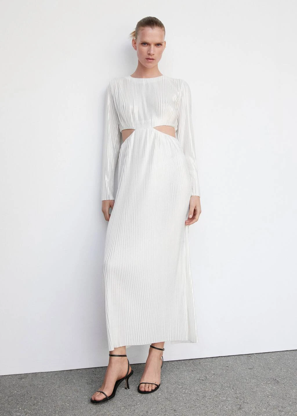 design plisse, droit, coupe longue, effet metallise, col rond, manches longues, fermeture eclair a l’arriere, fentes laterales, detail d’ouverture au dos, collection fetes et ceremoniesComposition: 60% polyester,40% polyester recyclé