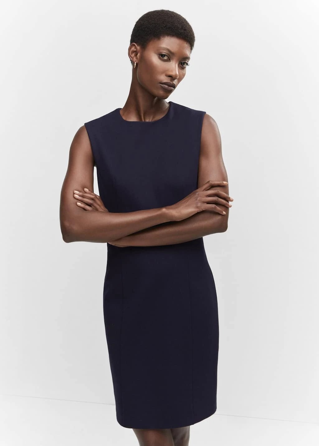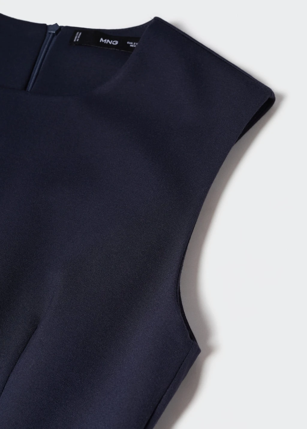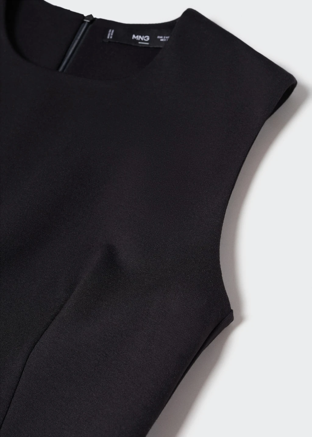 tissu en maille point de rome, ajuste, coupe courte, col rond, sans manches, fermeture eclair invisible a l’arriere, doublureComposition: 67% viscose,29% polyamide,4% elasthanne. Doublure: 100% polyester