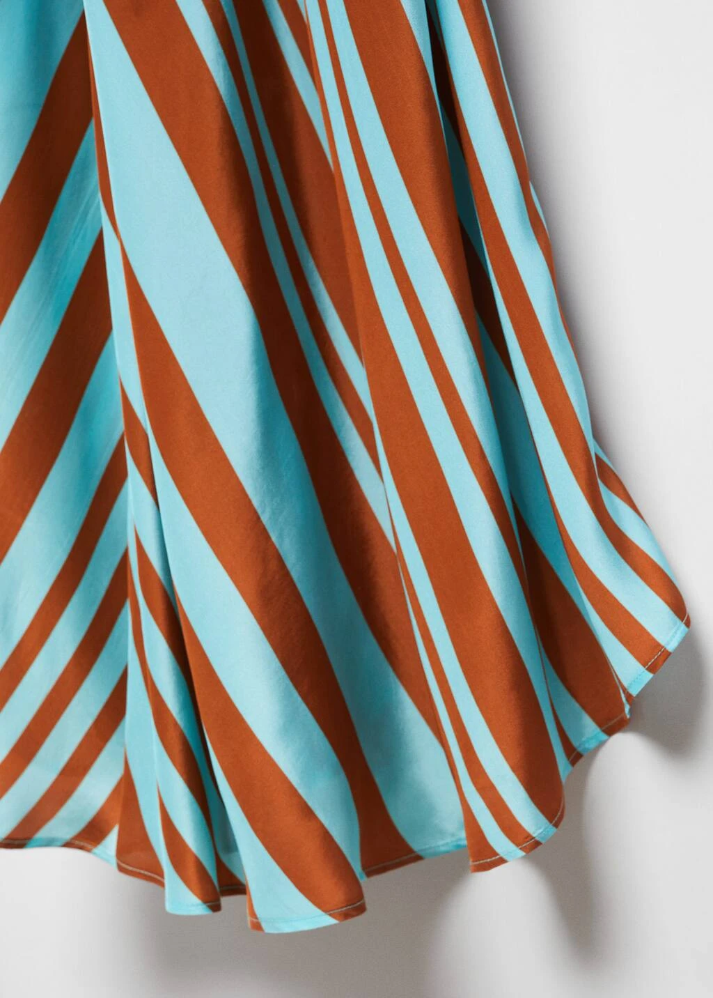 tissu satine, tissu fluide, imprime rayures, coupe longue, evase, col en v, bretelles larges croisees dans le dos, detail nœud, sans fermeture, collection fetes et ceremoniesComposition: 100% viscose