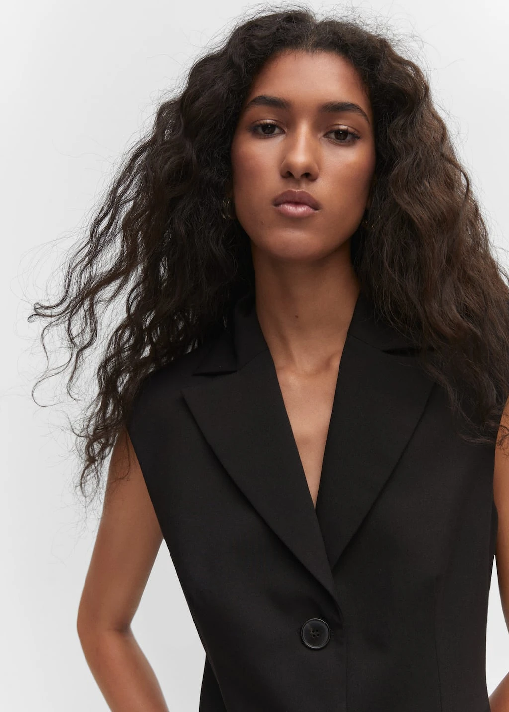 tissu fluide, coupe courte, coupe droite, col en v avec rabat, sans manches, deux poches passepoilees a l’avant, fermeture boutonnee sur le devant, doublure, la couleur blanche est une exclusivite en ligneComposition: 76% polyester,18% viscose,6% elasthanne. Doublure: 95% polyester,5% viscose