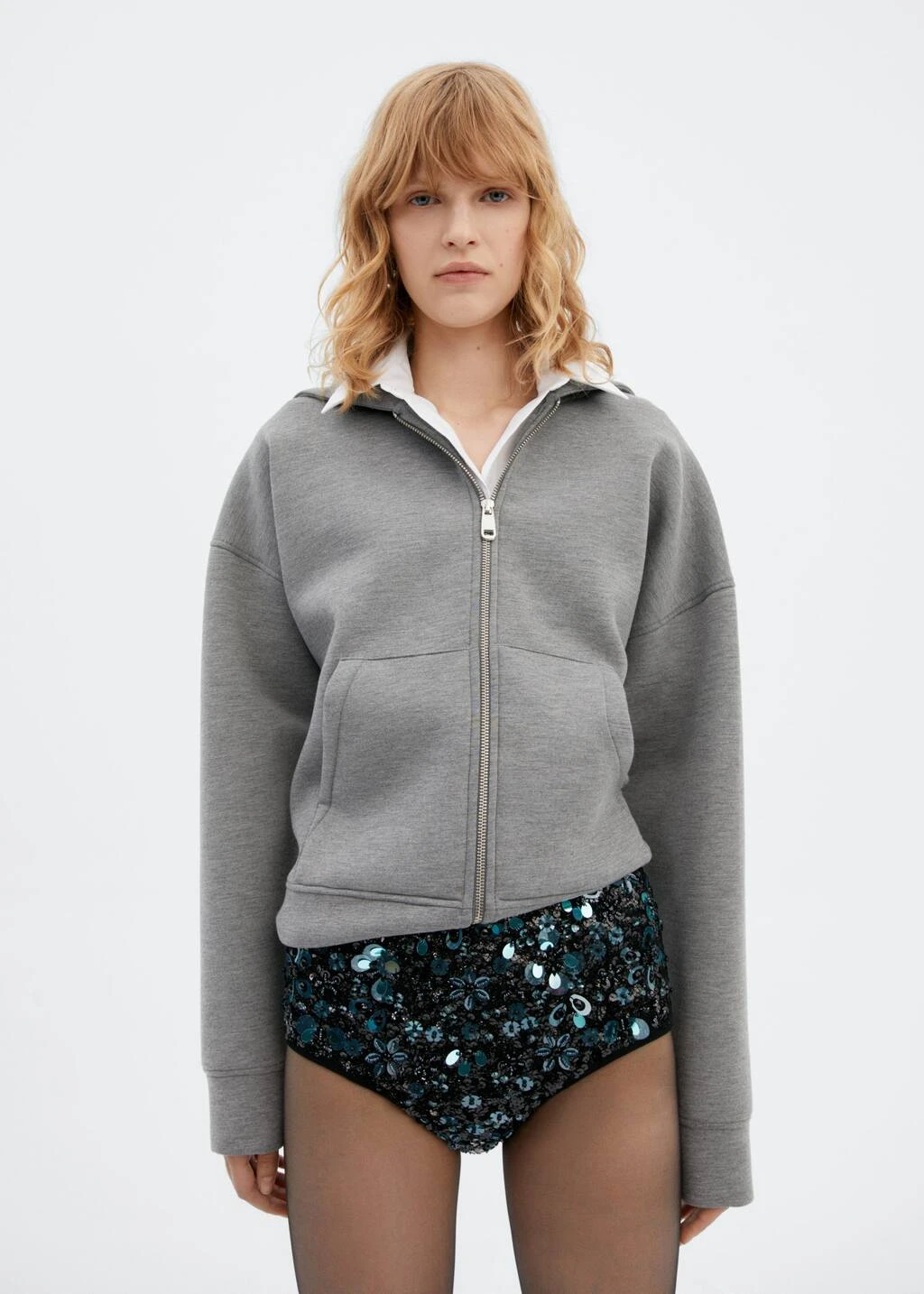 collection selection, coupe courte, taille haute, fermeture eclair laterale, broderie de mini-perles, doublure, une selection de pieces qui vous accompagneront lors du retour au bureau. confectionnee avec des matieres de qualite pour creer une garde-robe feminine et contemporaine pour votre quotidien.