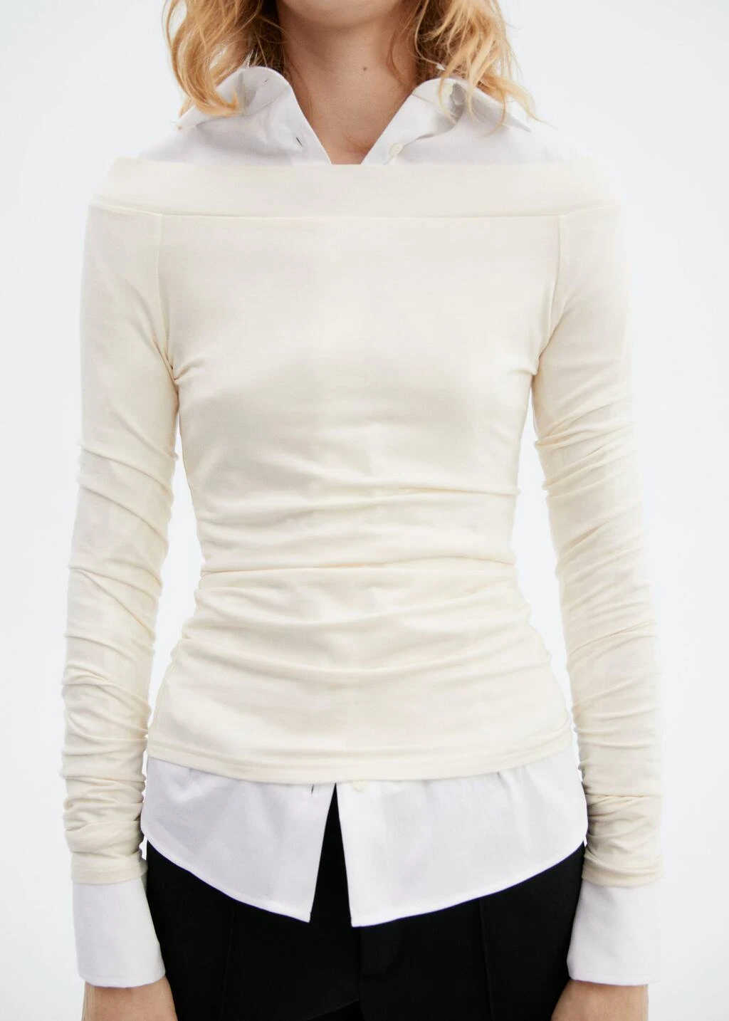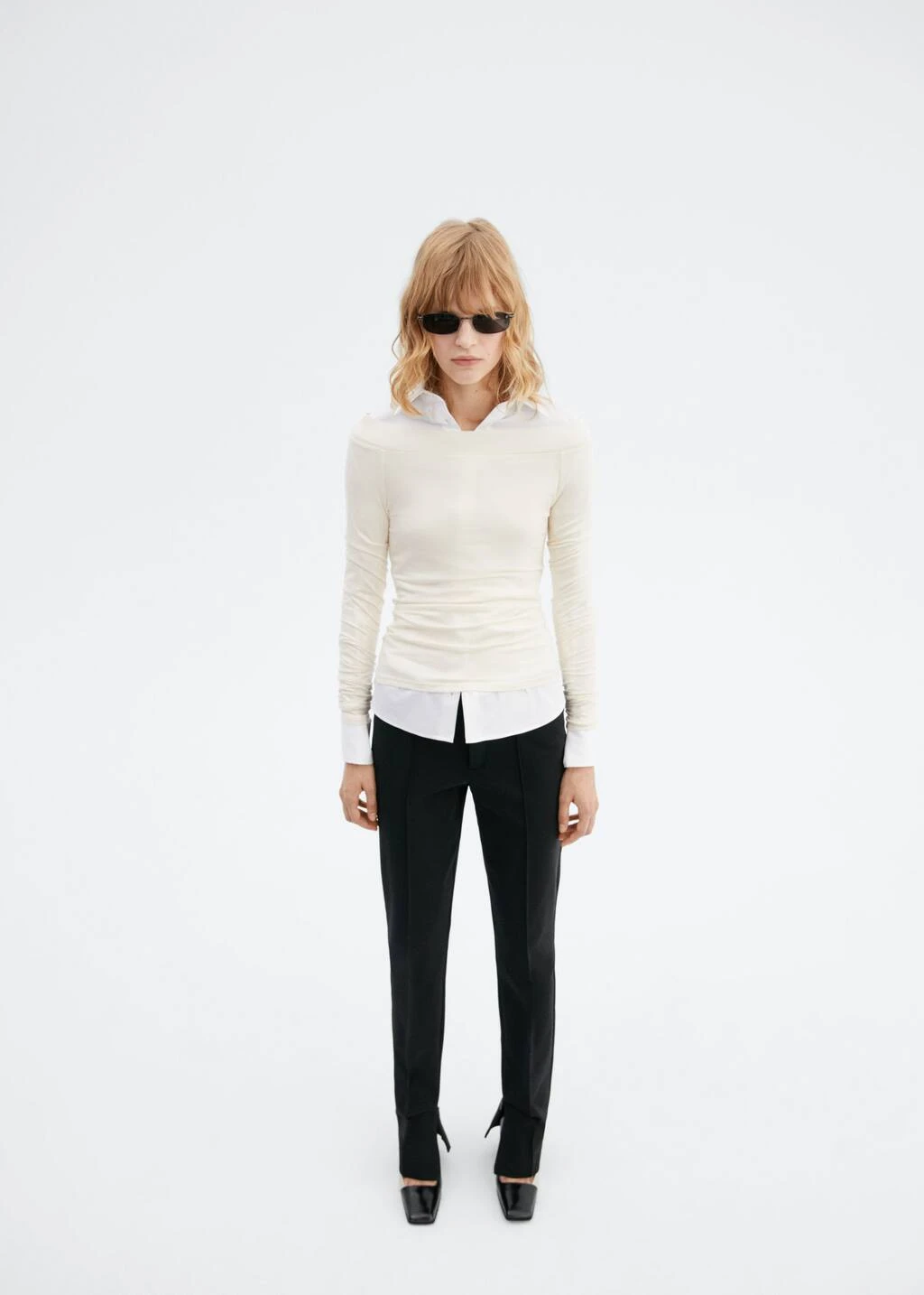 collection selection, tissu fluide, coupe cintree, col bateau, manches longues, une selection de pieces qui vous accompagneront lors du retour au bureau. confectionnee avec des matieres de qualite pour creer une garde-robe feminine et contemporaine pour votre quotidien.