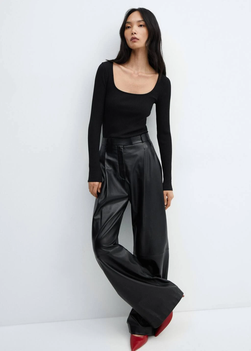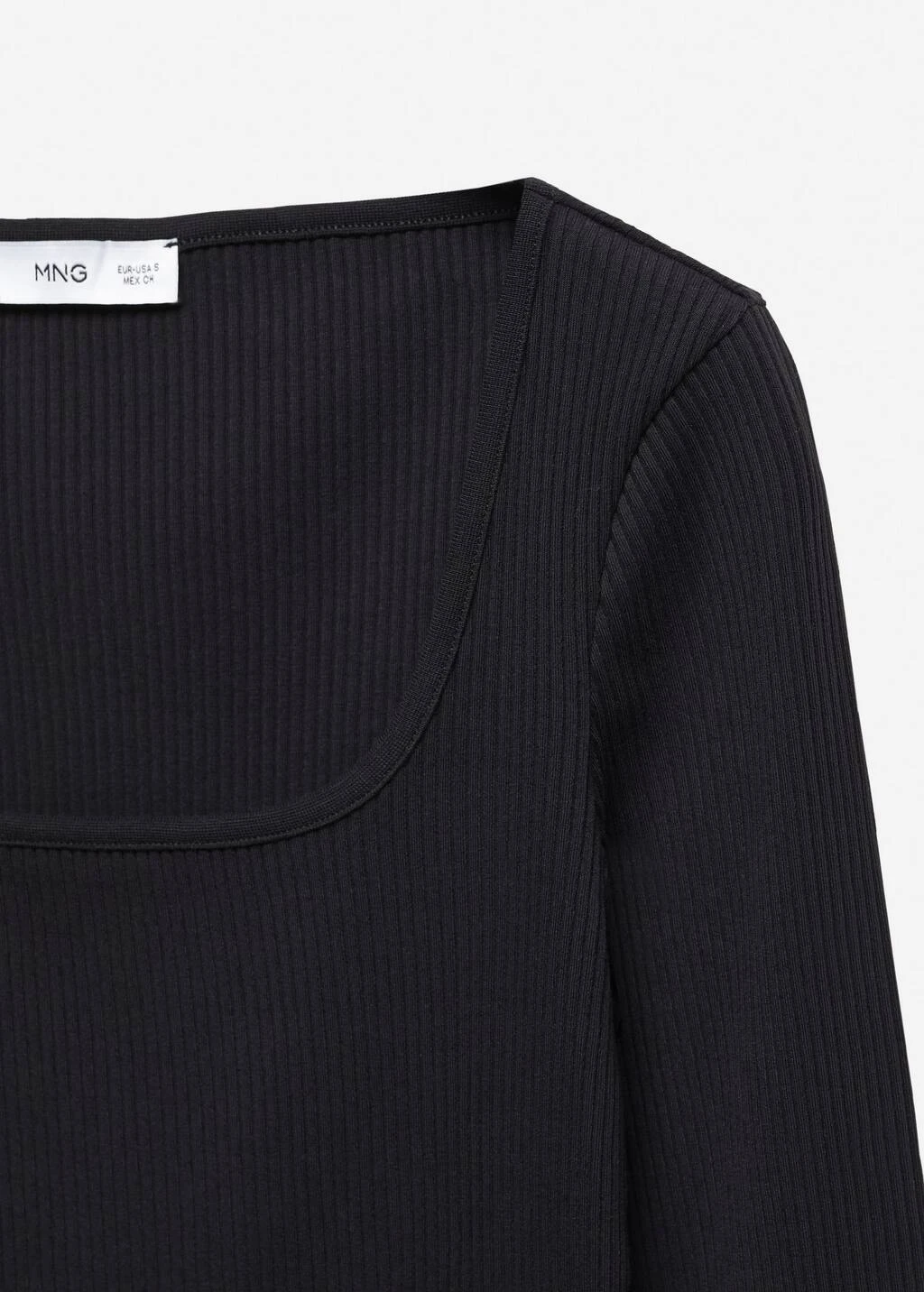 tissu en maille cotelee, tissu en coton organique recycle melange, tissu elastique, droit, col carre, manches longuesComposition: 96% coton,4% elasthanne