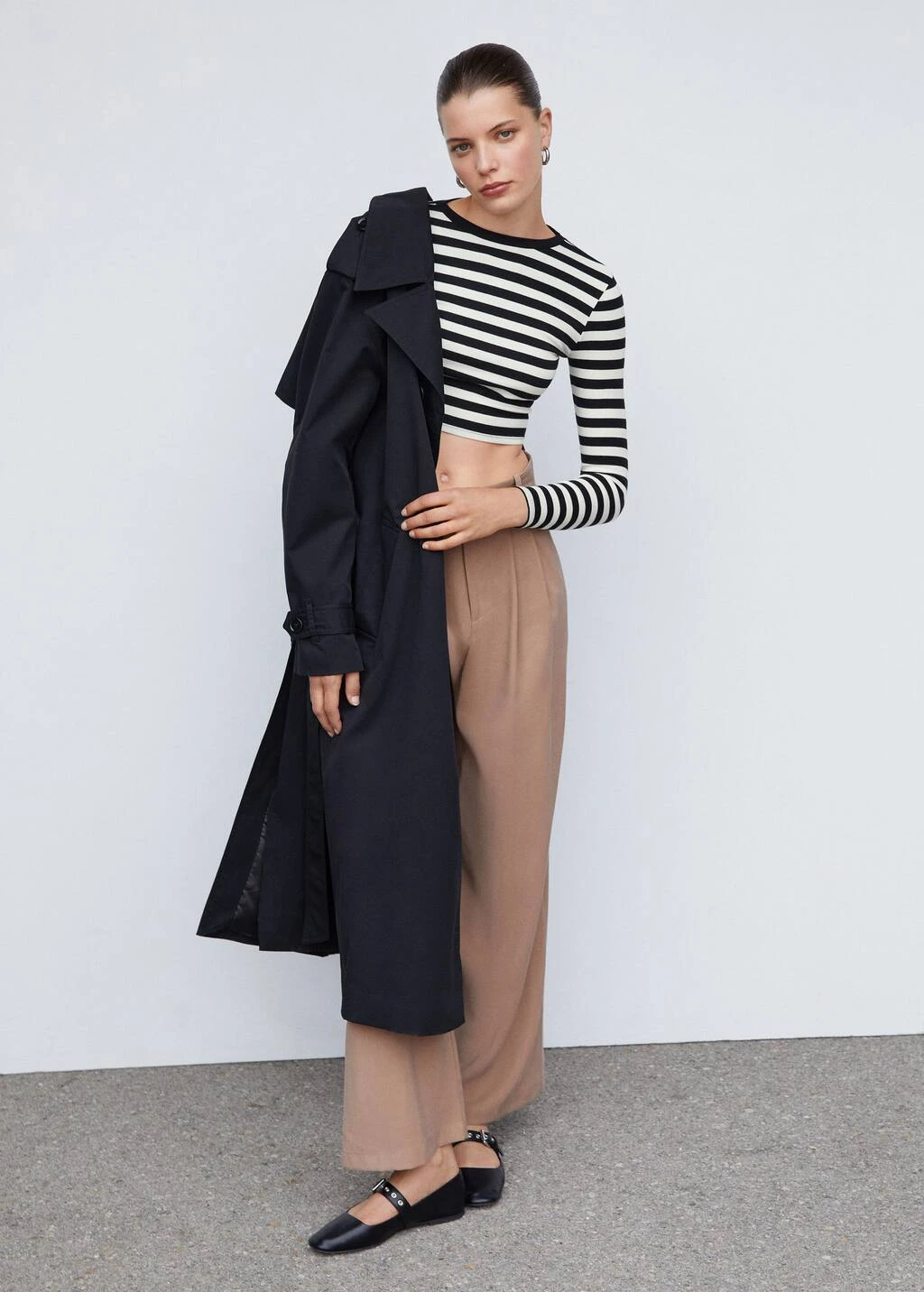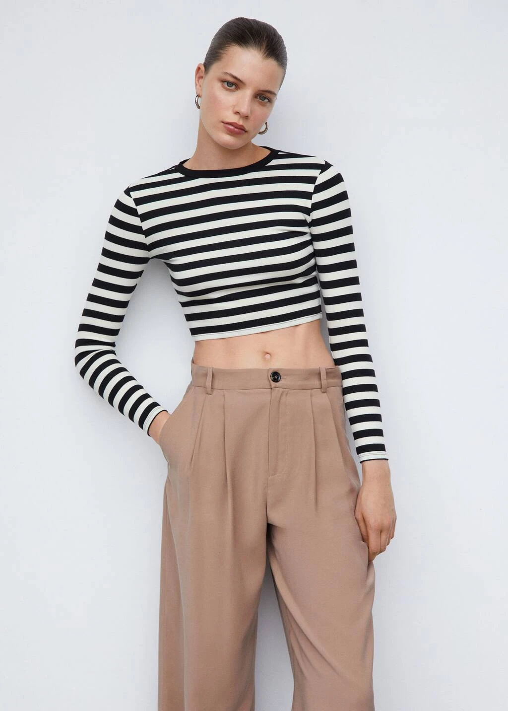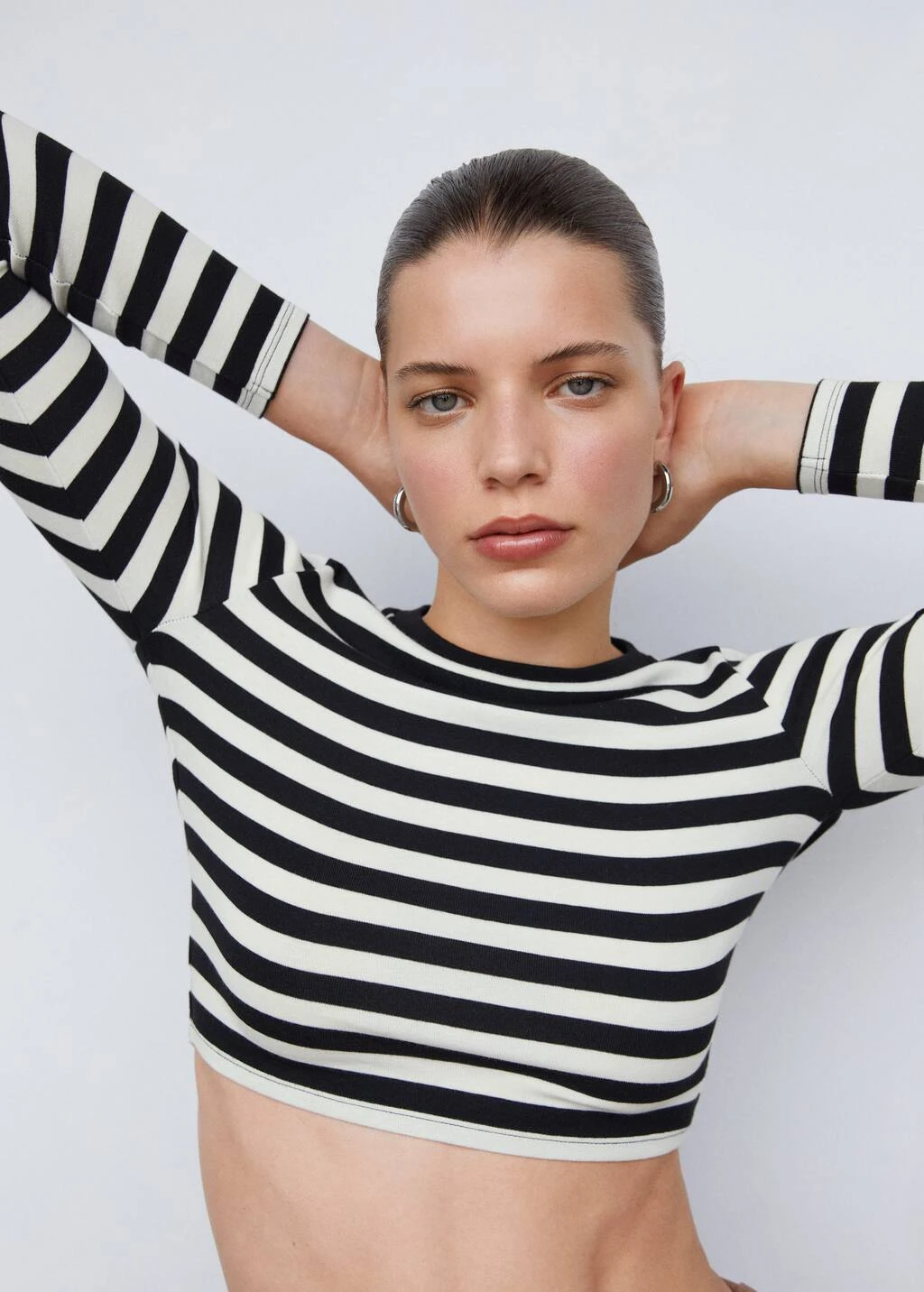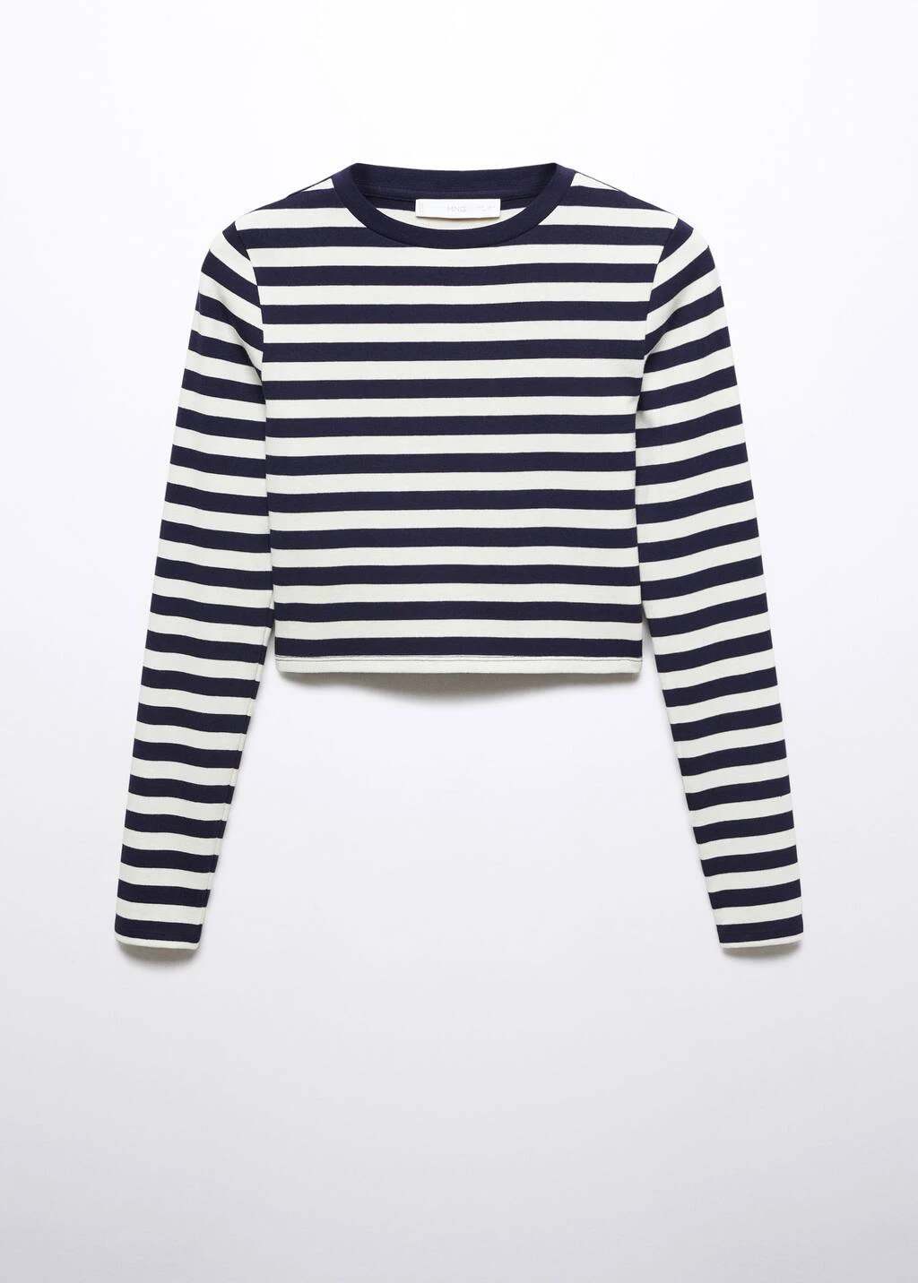 tissu en coton et modal melanges, coupe cintree, style crop, motif raye, col rond, manches longues, sans fermetureComposition: 48% coton,47% modal,5% elasthanne