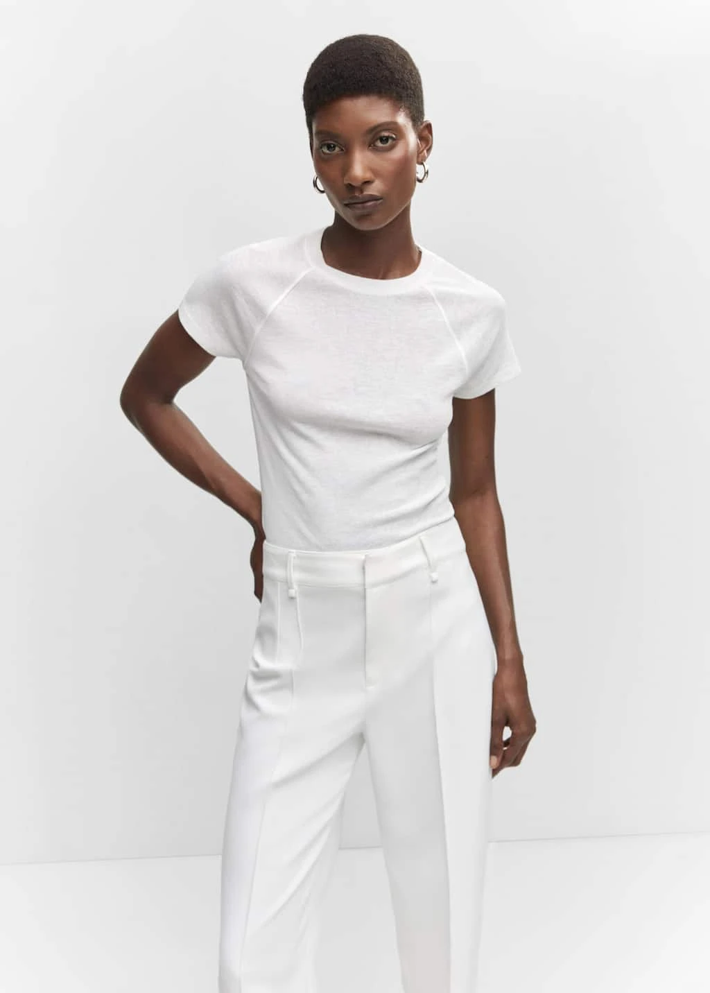 tissu fluide, coupe droite, col rond, manches courtes, coutures decorativesComposition: 60% polyester,40% polyester recyclé