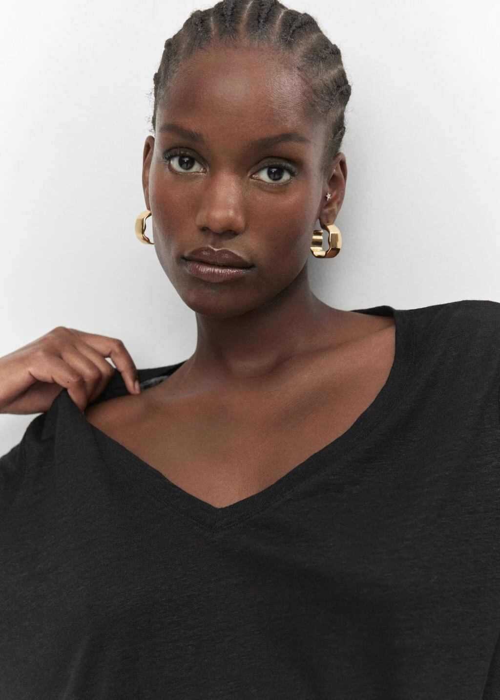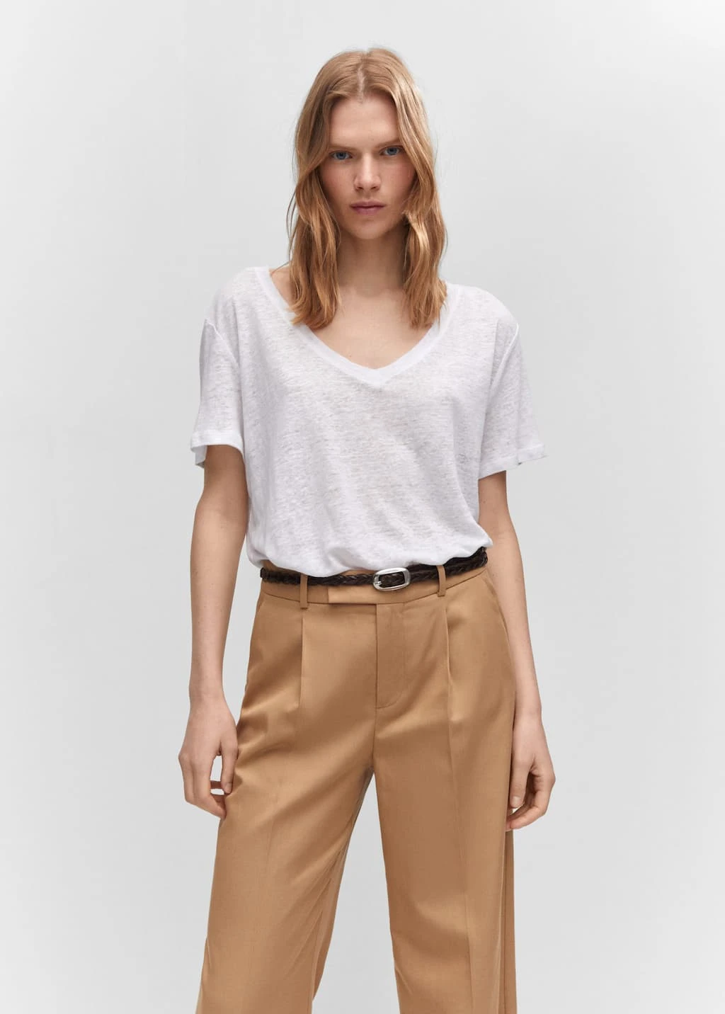 tissu 100 % lin, coupe droite, col en v, manches courtes, sans fermeture, disponible plusComposition: 100% lin