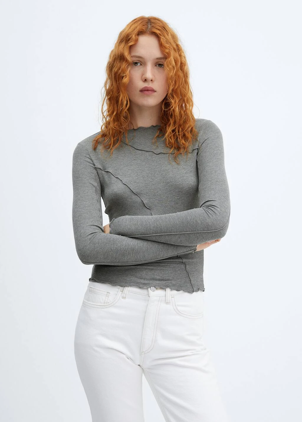 T-shirt Maille Côtelée Coutures Décoratives