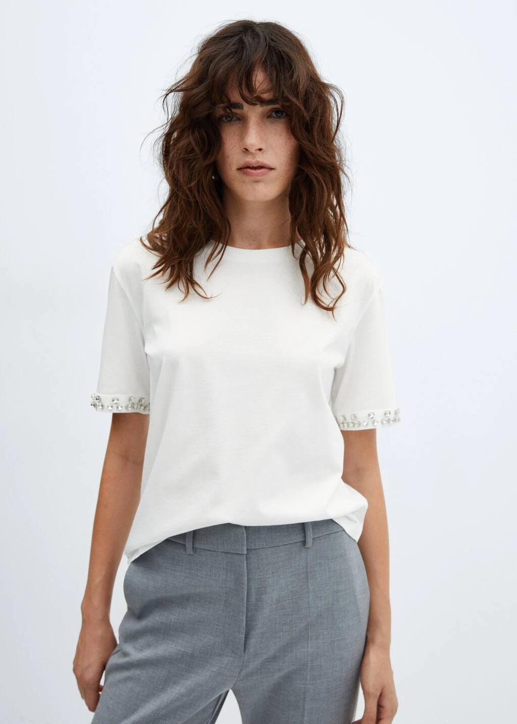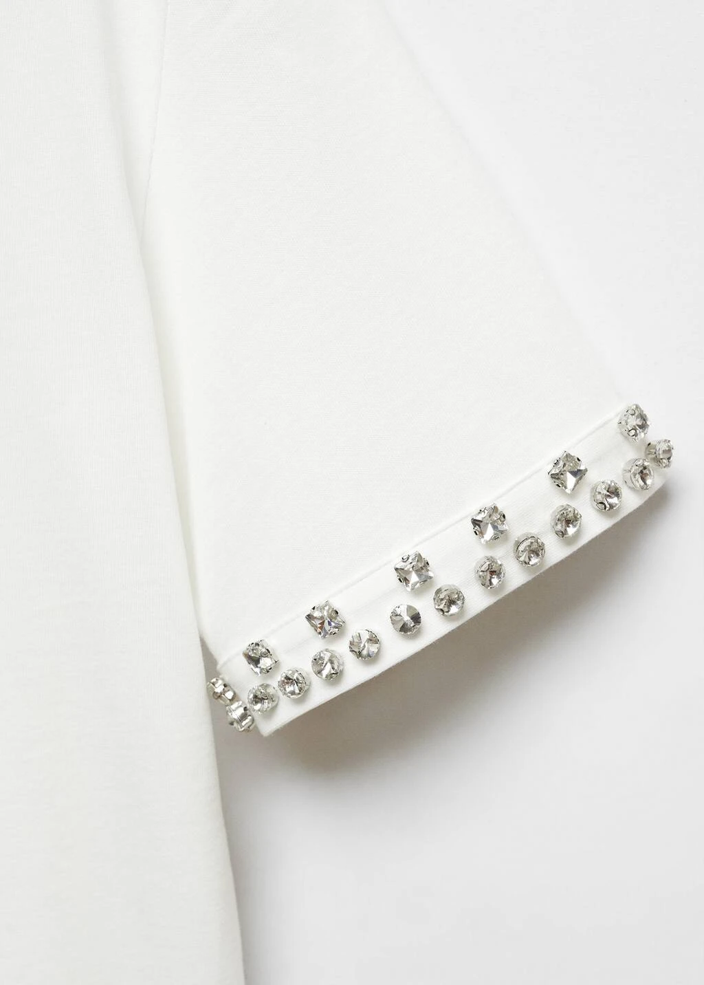 100 % coton, coupe droite, col rond, manches courtes, ornements decoratifs brillantsComposition: 100% coton