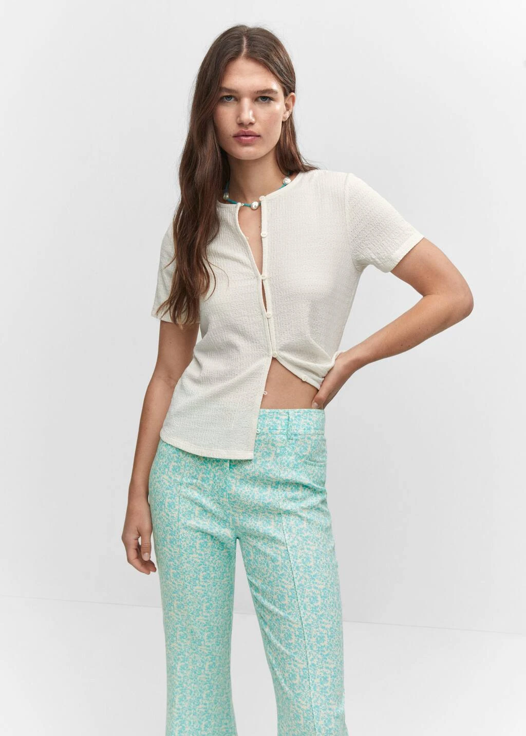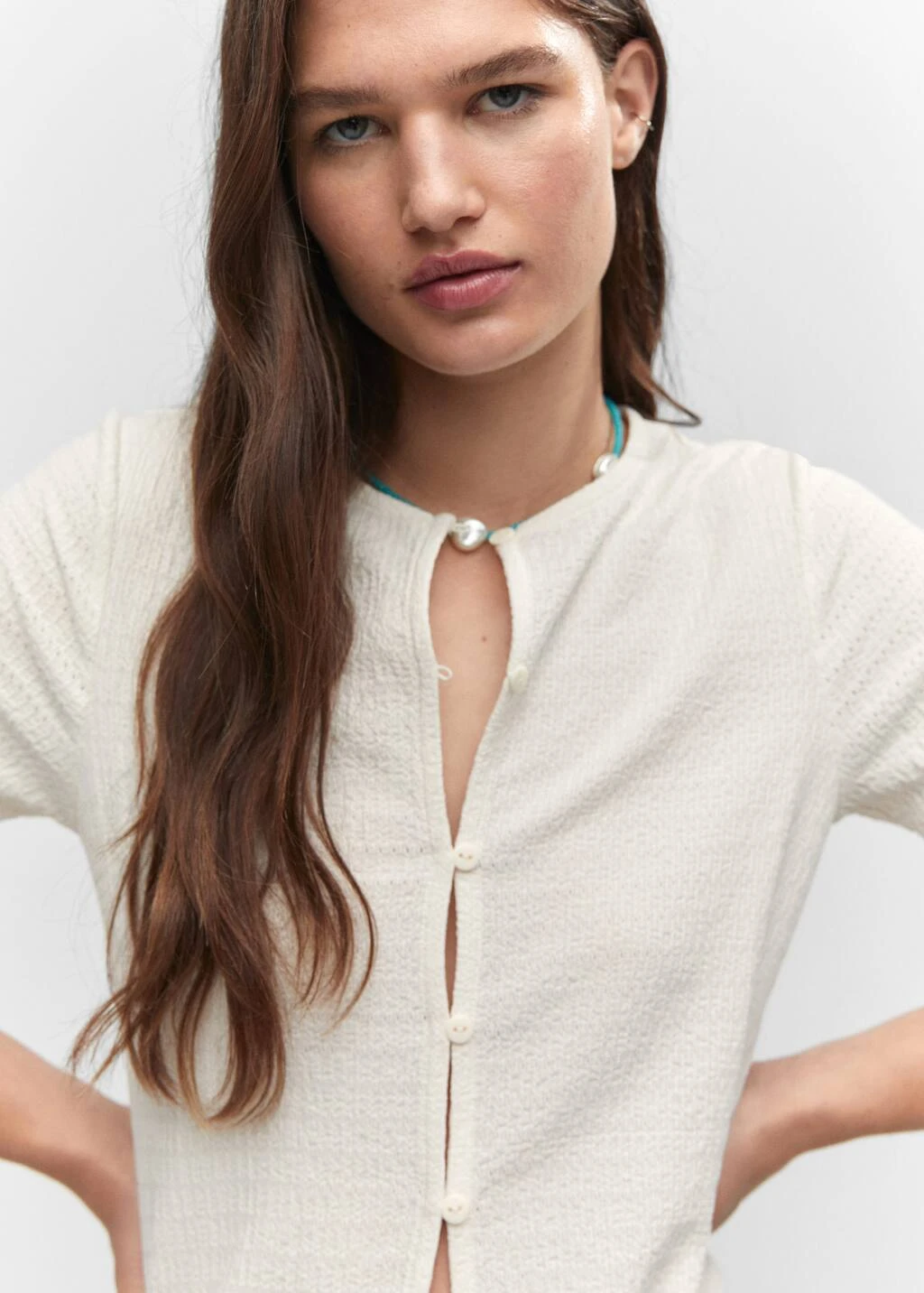 T-shirt Texturé Boutons