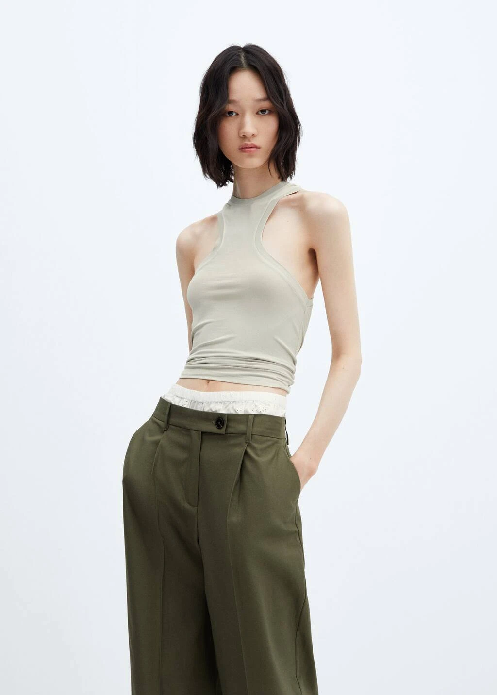 tissu fluide, ajuste, emmanchures americaines, bretelles larges, sans manchesComposition: 95% polyester,5% elasthanne