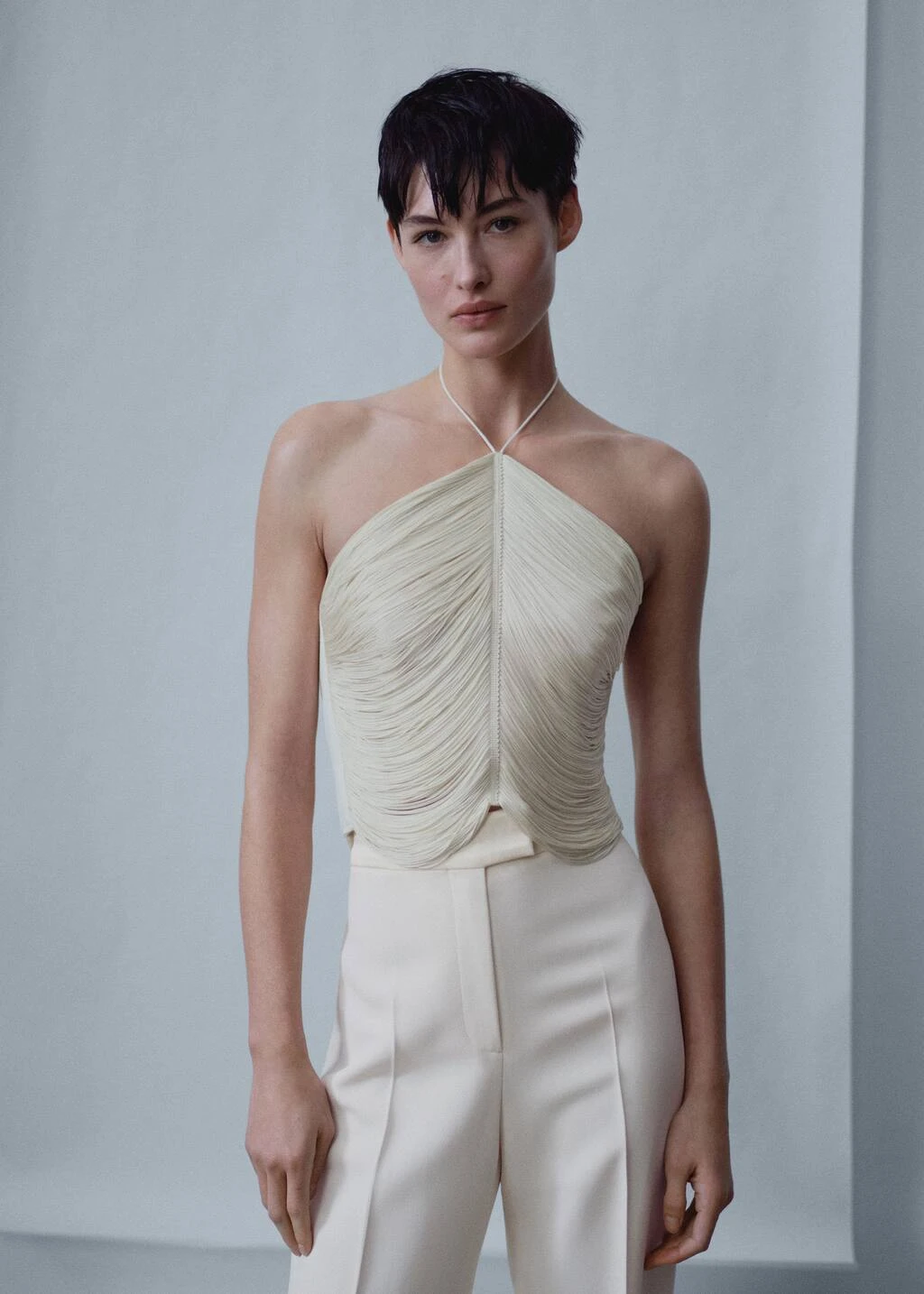 le haut elegant avec une multitude de franges vous mettra en valeur lors de tout type d’evenement. associez-le a un pantalon palazzo ou a une maxijupe et arborez un look parfait pour les evenements du moment, tissu a bords franges, coupe cintree, coupe courte, emmanchures americaines, bretelles fines, bas asymetrique, fabrique au portugal, short denim fleurs, collection fetes et ceremonies, capsule : une collection de vetements en edition limitee, fabriques avec les meilleurs tissus et le plus grand soin en matiere de patrons, afin d’obtenir les meilleures finitions. cette collection exclusive est concue pour les evenements et les occasions les plus chics.COMPOSITION:66% POLYESTER,34% ELASTHANNE. FRANGES:100% VISCOSE. CÔTÉS:49% ACETATE,48% VISCOSE,3% ELASTHANNE. BRETELLES:100% POLYESTER