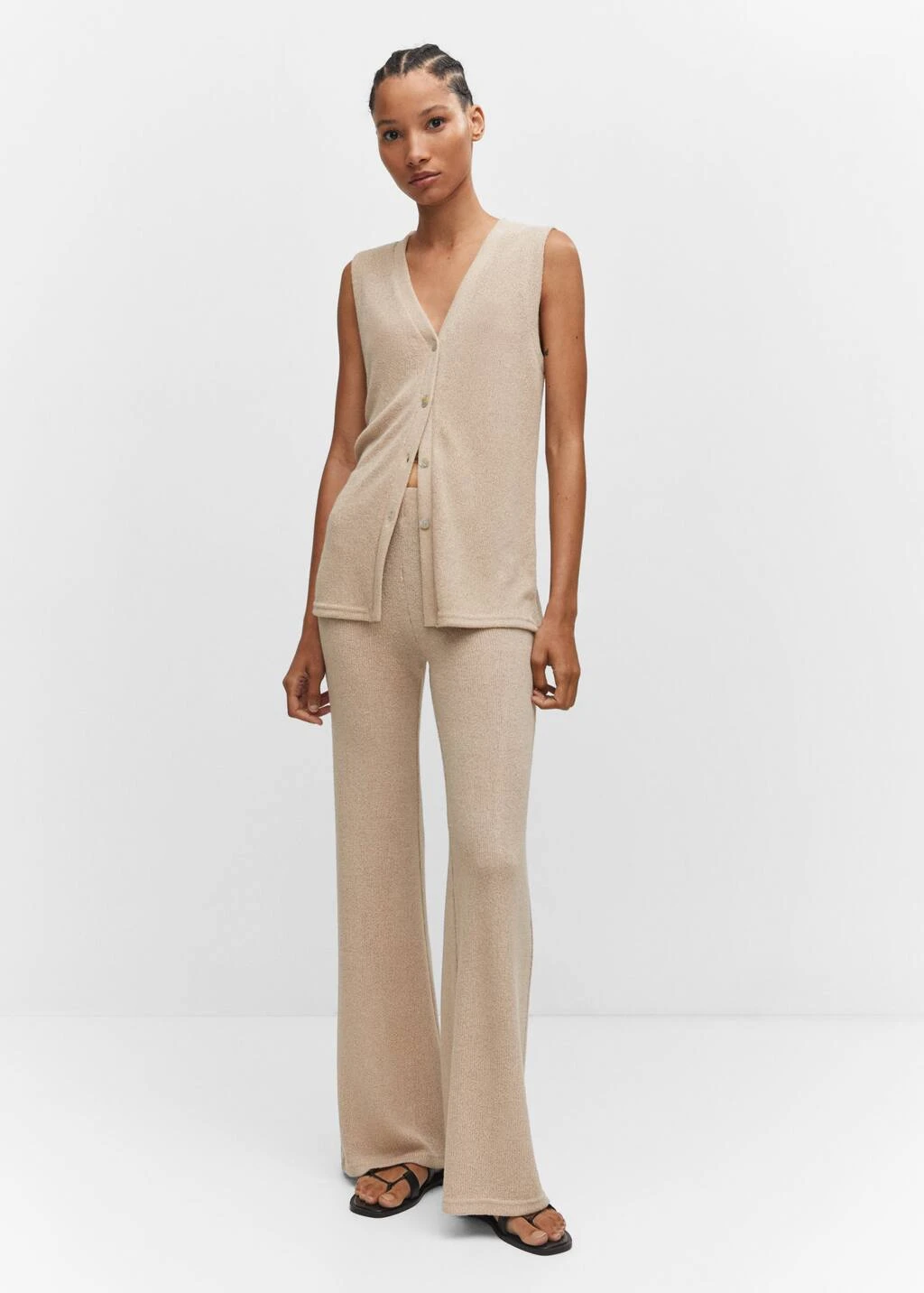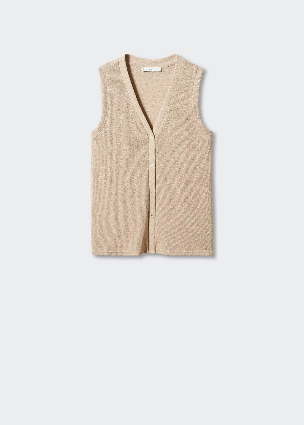 tissu en maille, coupe longue, coupe droite, col en v, sans manches, fermeture boutonnee sur le devant, total look, disponible plusComposition: 58% viscose,42% polyester