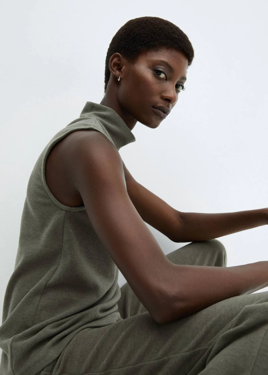 tissu en maille fine, coupe droite, col montant, sans manches, total lookComposition: 79% polyester,18% viscose,3% elasthanne