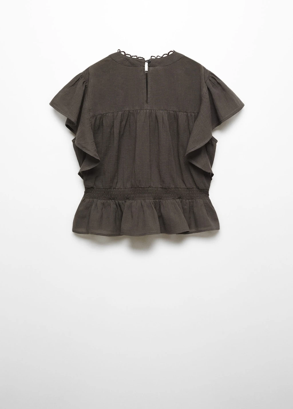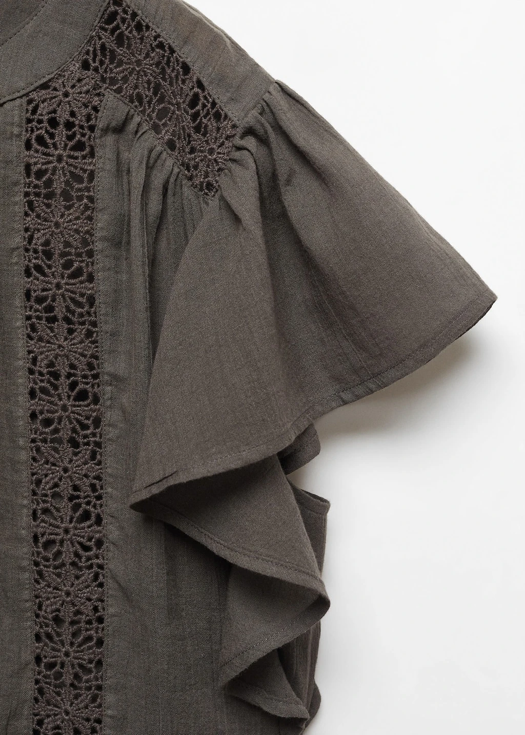 tissu 100 % coton, coupe courte, coupe cintree, col rond, manches courtes volantees, bouton de fermeture a l’arriere, taille elastiquee a l’arriere, base volantee, details en dentelle, bords denteles, style boho, style romantiqueComposition: 100% coton. Dentelle: 100% coton